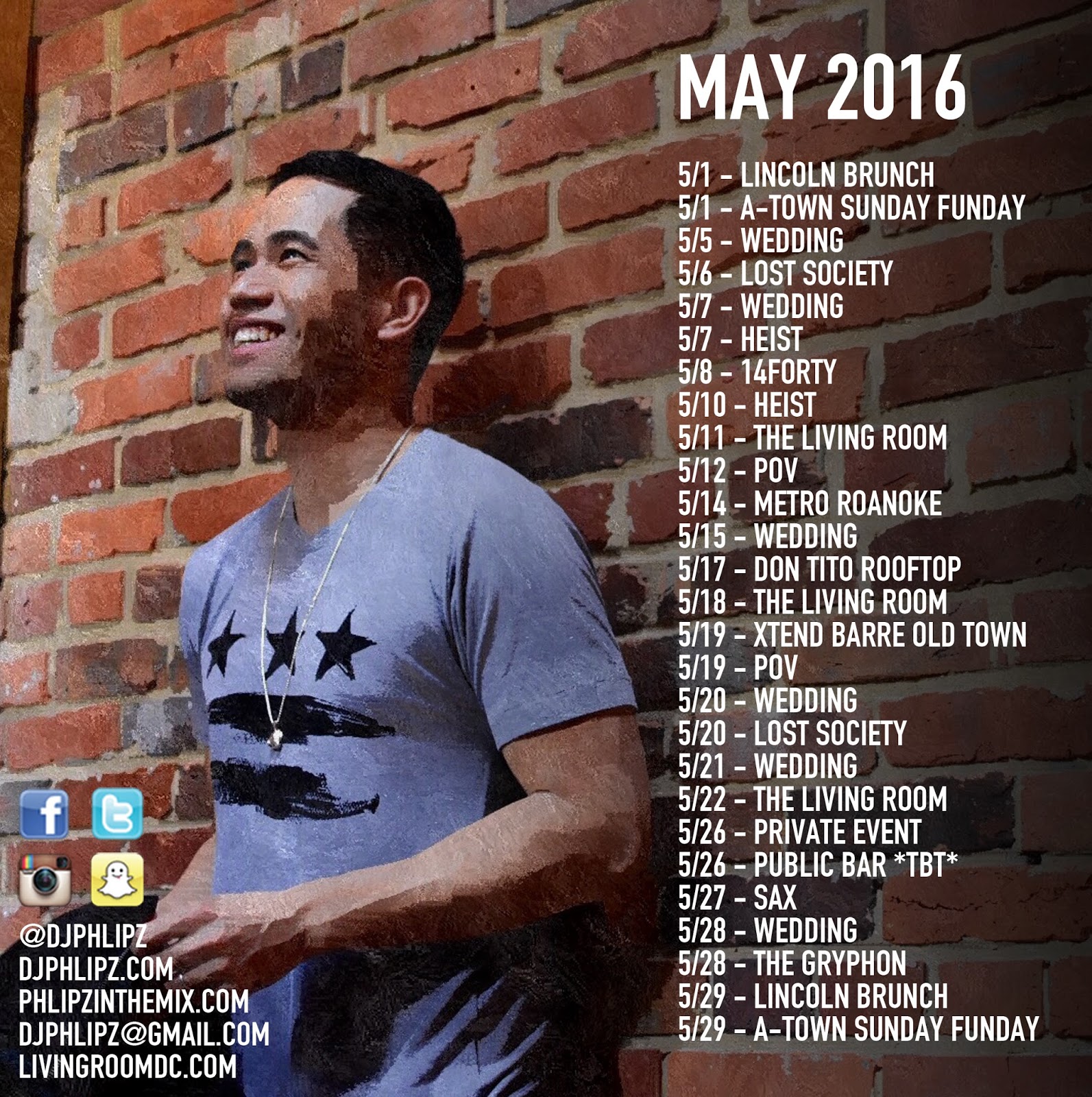 Looking forward to a fun and busy October mixed with club gigs and private events.. Here's where you can find me this month starting tonight at Heist! Hit me up if you'll be coming out to any of my gigs or if you need a DJ for any of your parties.. Holiday Season is coming up! I'll be doing giveaways this month too with new shirts, snapbacks and USB drives with my mixes. Thank you all for the support!